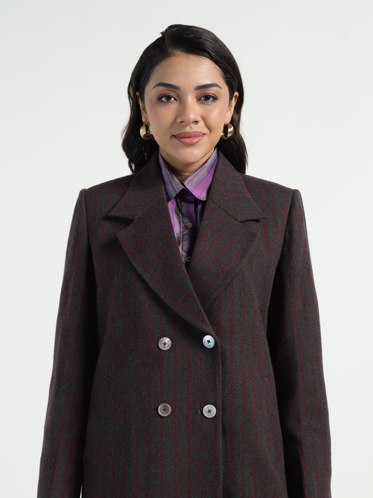 Ladakh Wool Long Coat Striped