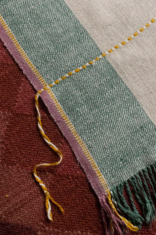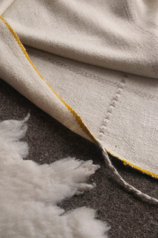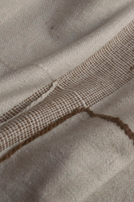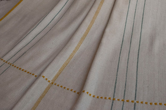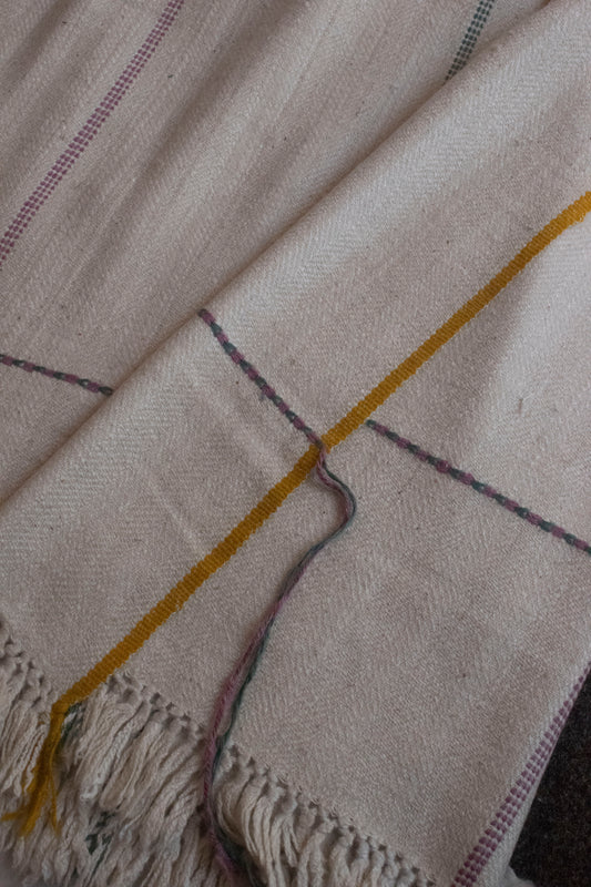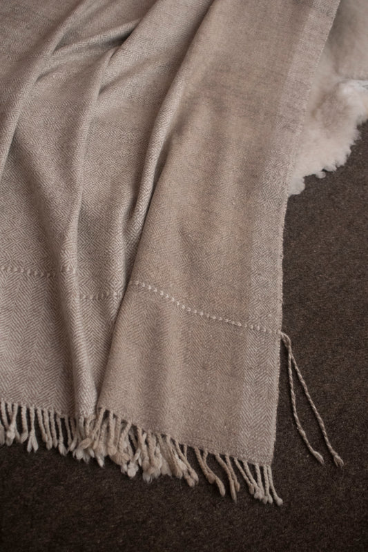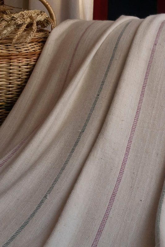 White and Beige Cashmere Shawl (Warp Rib Stripes)